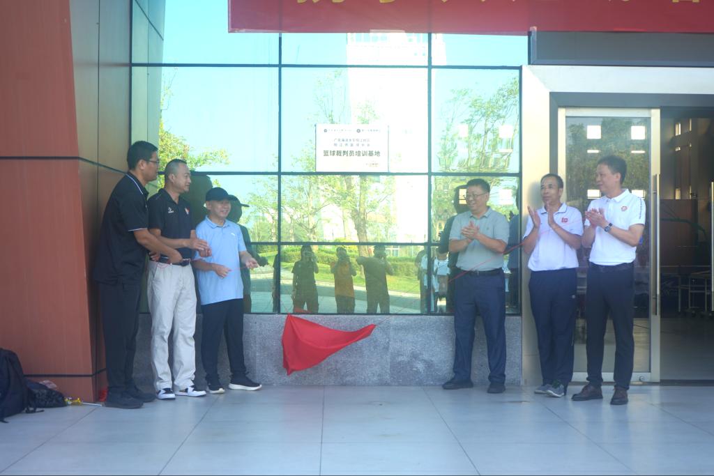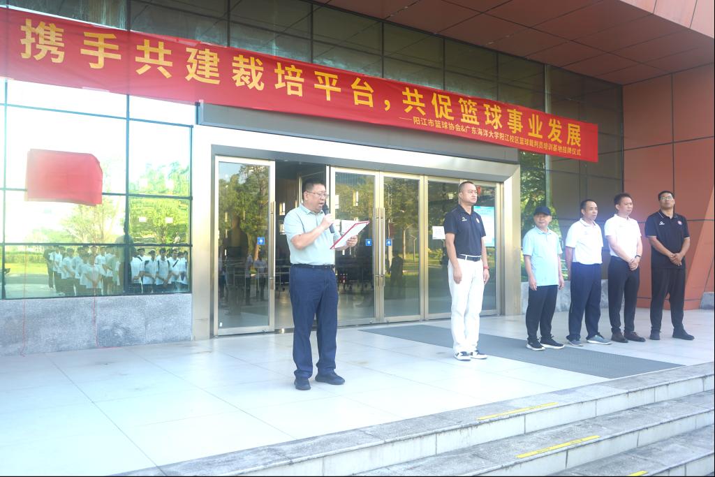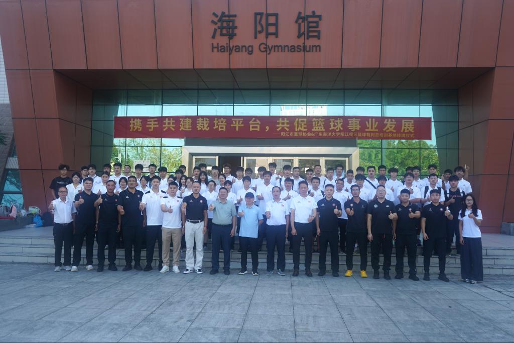 随后,出席领导共同为“广东海洋大学阳江校区篮球裁判培训基地” 揭牌,标志着基地正式投入运营。基地将开设篮球规则解读、裁判实操技能、赛事组织管理等系列课程,邀请国家级、一级篮球裁判担任授课导师,通过理论教学与实战演练相结合的方式,培养兼具专业素养与实践能力的篮球裁判人才。