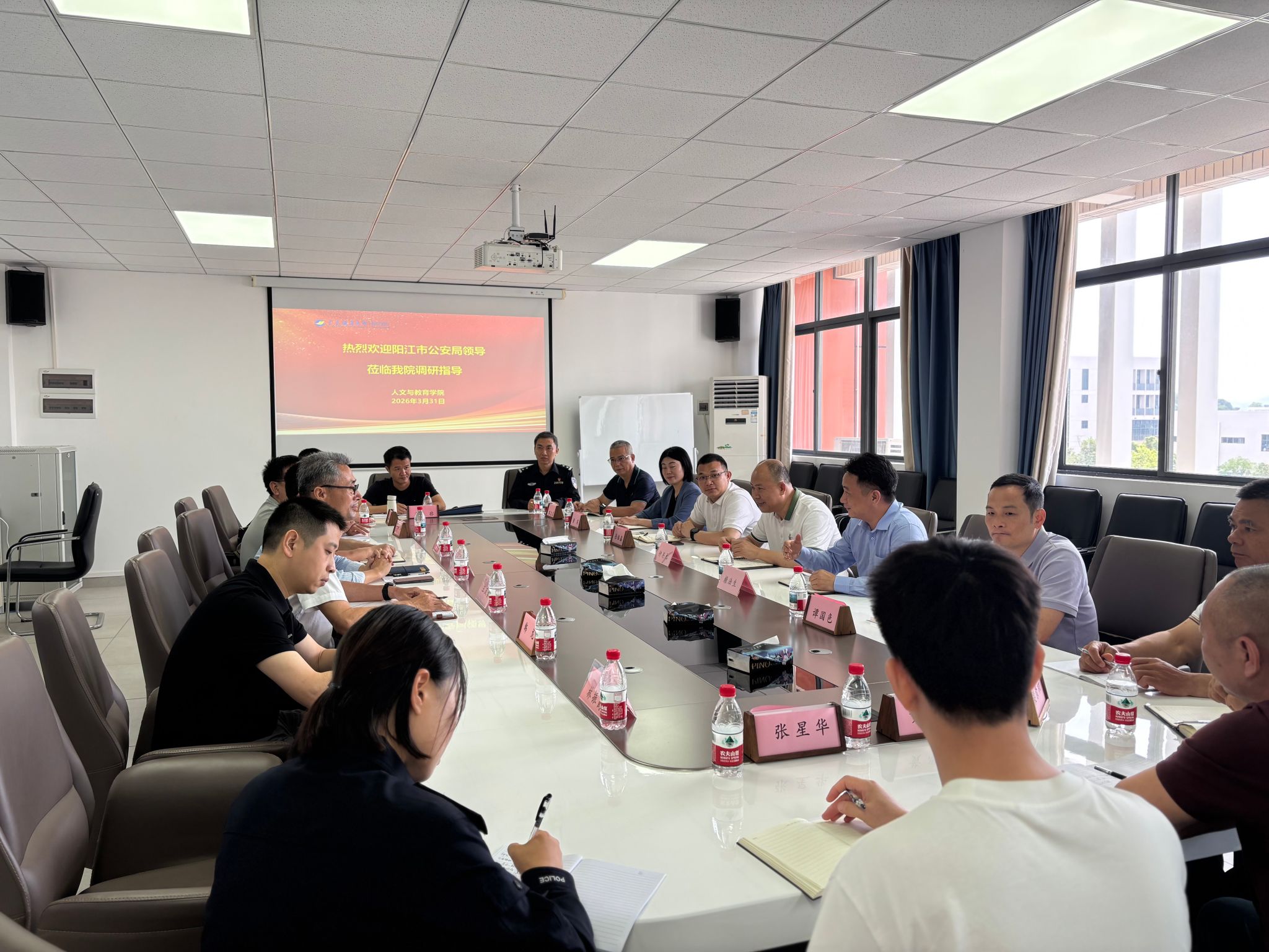 此次调研,进一步密切了校地联系,双方围绕民警在职学历提升、思政教官培养、培训基地共建、学生实习就业等事项深入交流,达成多项合作意向,推动学院学科优势与地方公安需求深度融合,为后续协同育人、服务平安阳江建设奠定了坚实基础。