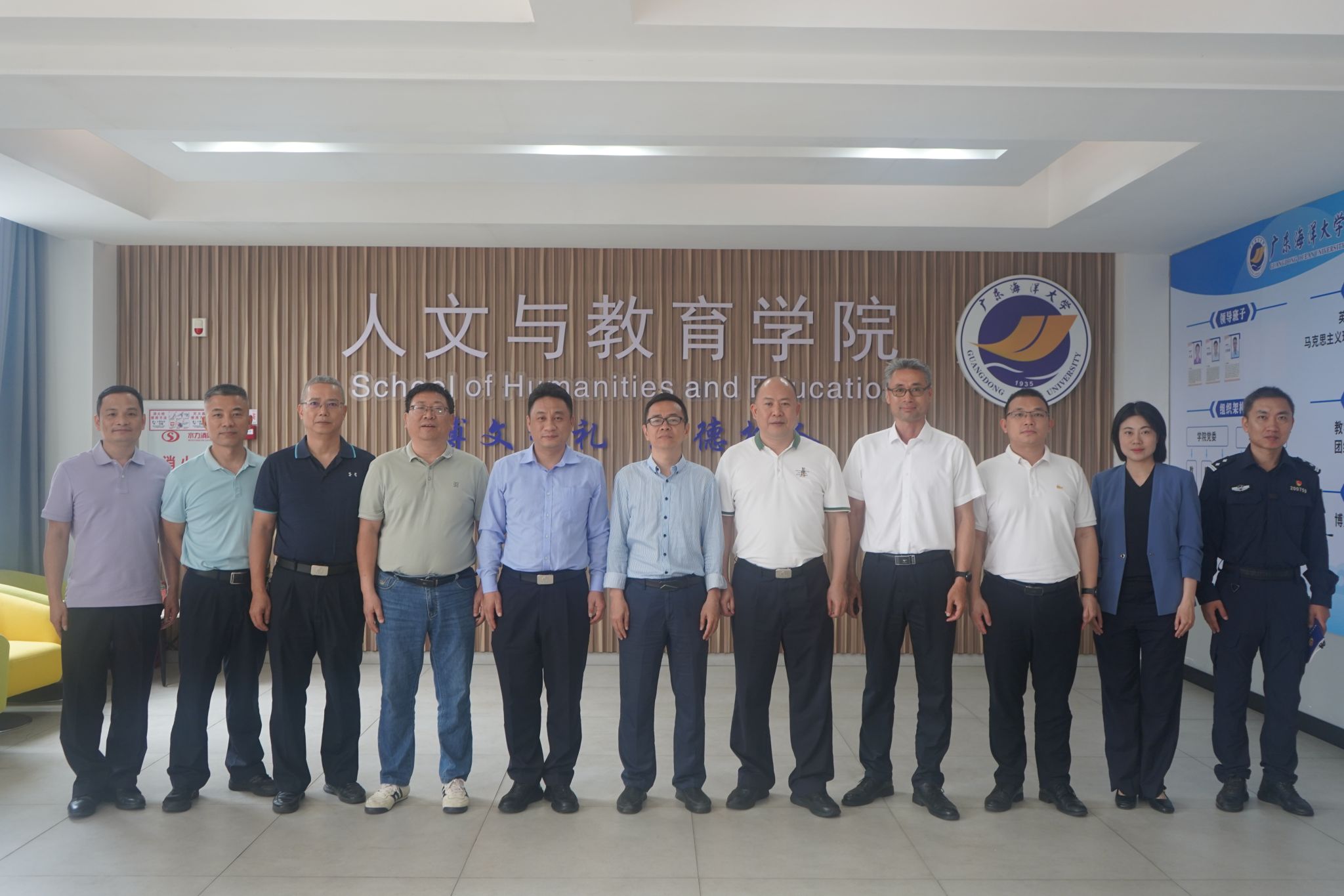 3月31日上午,阳江市公安局党委委员、副局长钟英元、赖法生、林良劲一行,到广东海洋大学阳江校区人文与教育学院调研交流。学院党委书记许浩、院长张新美、副院长王凤春及相关老师参加座谈。